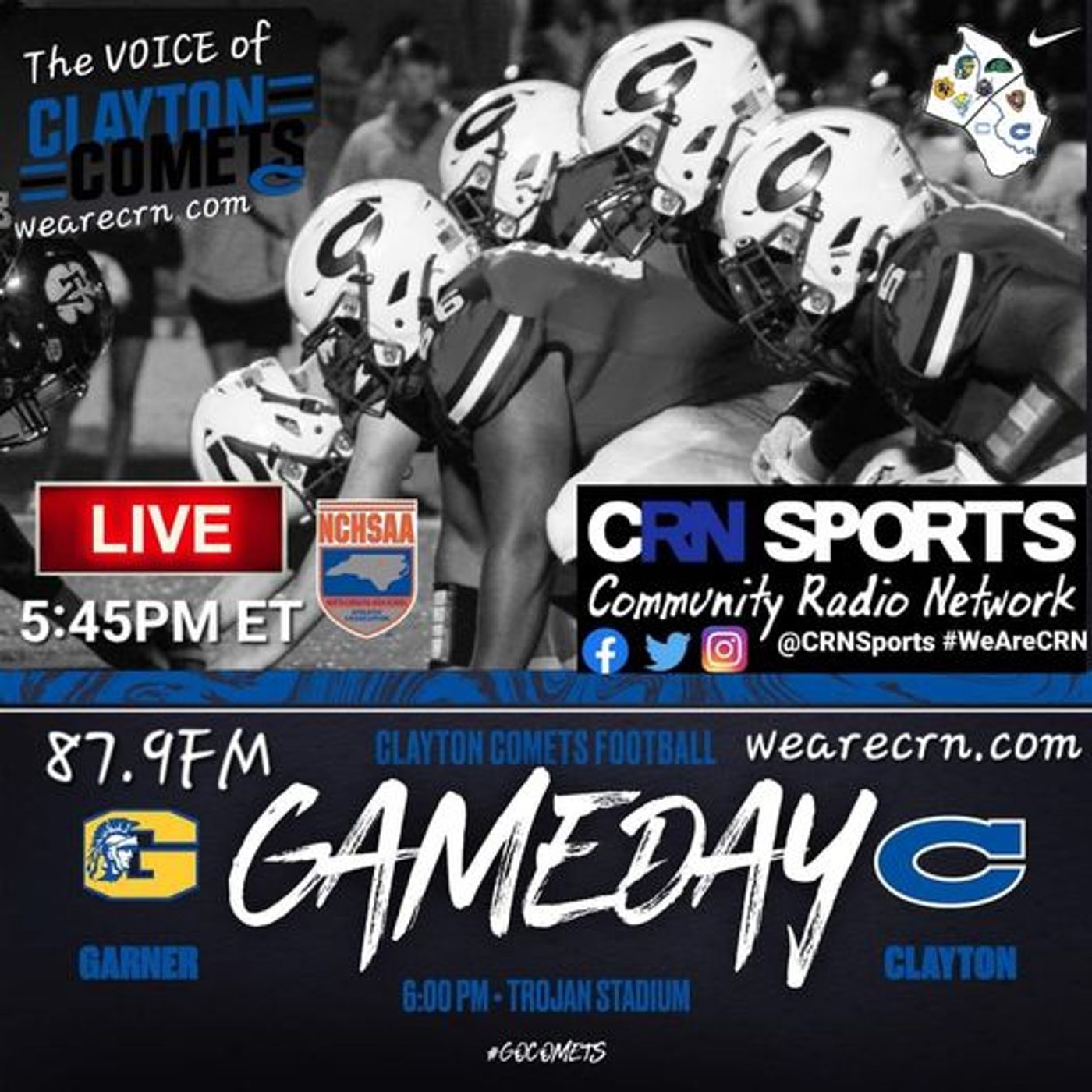 CRN Sports Network - ALTERNATE BROADCAST LINK!! Clayton Comets VS Garner Trojans Football from Trojan Stadium!! #WeAreCRN #GoComets - CRN Sports Network | Podcast | Liulo.fm - Podcast & Audio Platform