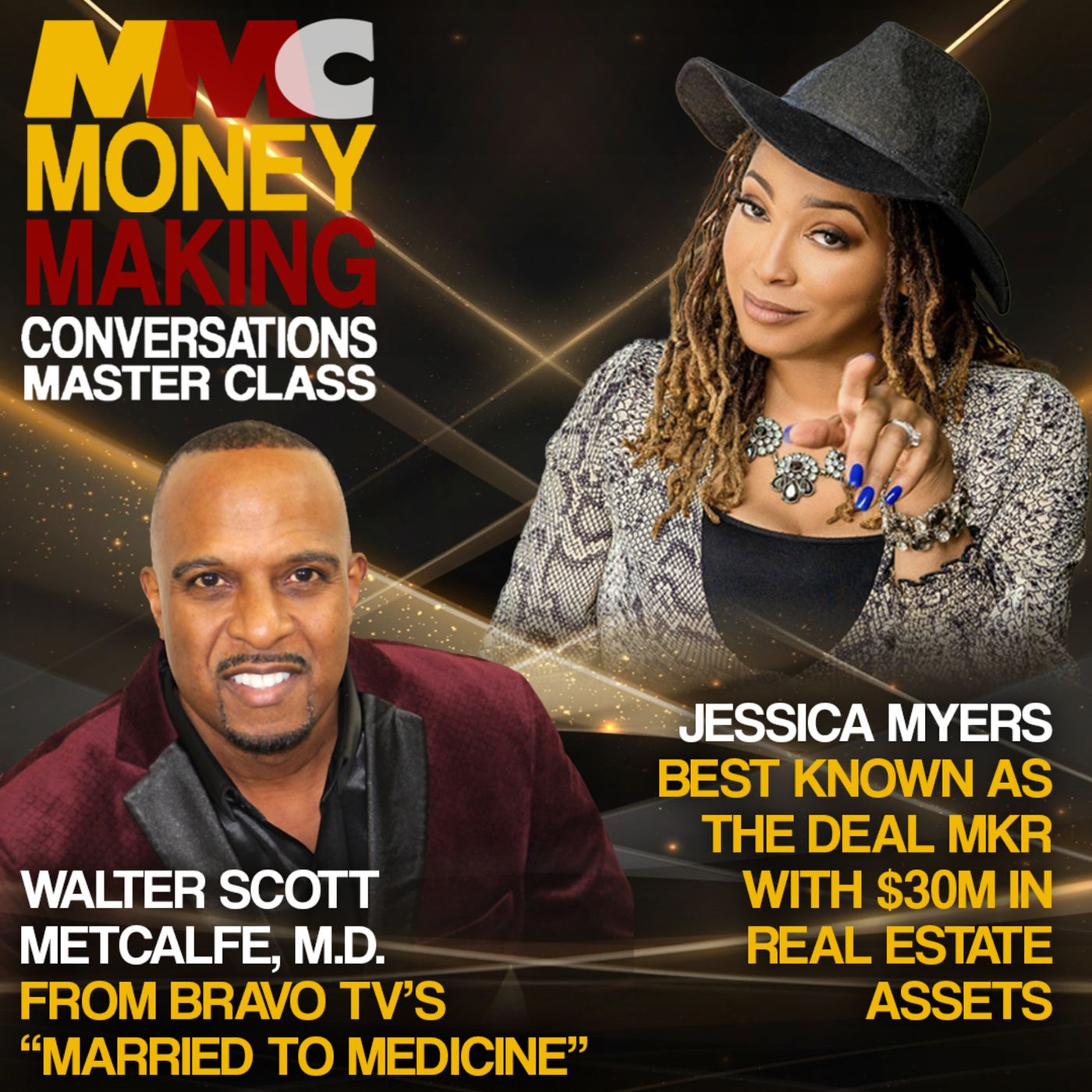 My guest today is Dr. Walter Scott Metcalfe. He is an American physician and business owner best known for his appearances on Bravo TV’s Married to Medicine series. With over 20 years of experience in the medical field and community service and his growing popularity, Dr. Metcalfe is the one to turn to when you are seeking professional expert opinion on world health issues, Lifestyle Medicine Lectures, Physical Health, and Preventative Medicine. We will discuss his motivation to pursue Medicine, the Joys and Pains of Medicine, and his outlets to reduce stress, such as Family Time, Physical Fitness, Cooking, and Writing. Please welcome to Money Making Conversations Master Class, Dr. Walter Scott Metcalfe. My guest today is Jessica Myers. She is a real estate developer and entrepreneur. As an investor and hotel owner, transacting over $30M in Real Estate assets, she is best known as the Deal MKR. Her portfolio includes hotel proper and developments in Georgia, Indiana, Oklahoma, and the Bahamas. No one wants a boss, but everyone needs a coach. Jessica Myers helps working professionals clarify their vision to connect with their internal GPS to provide a clear route to achieve their dreams. Please welcome to Money Making Conversations Master Class Jessica Myers. See