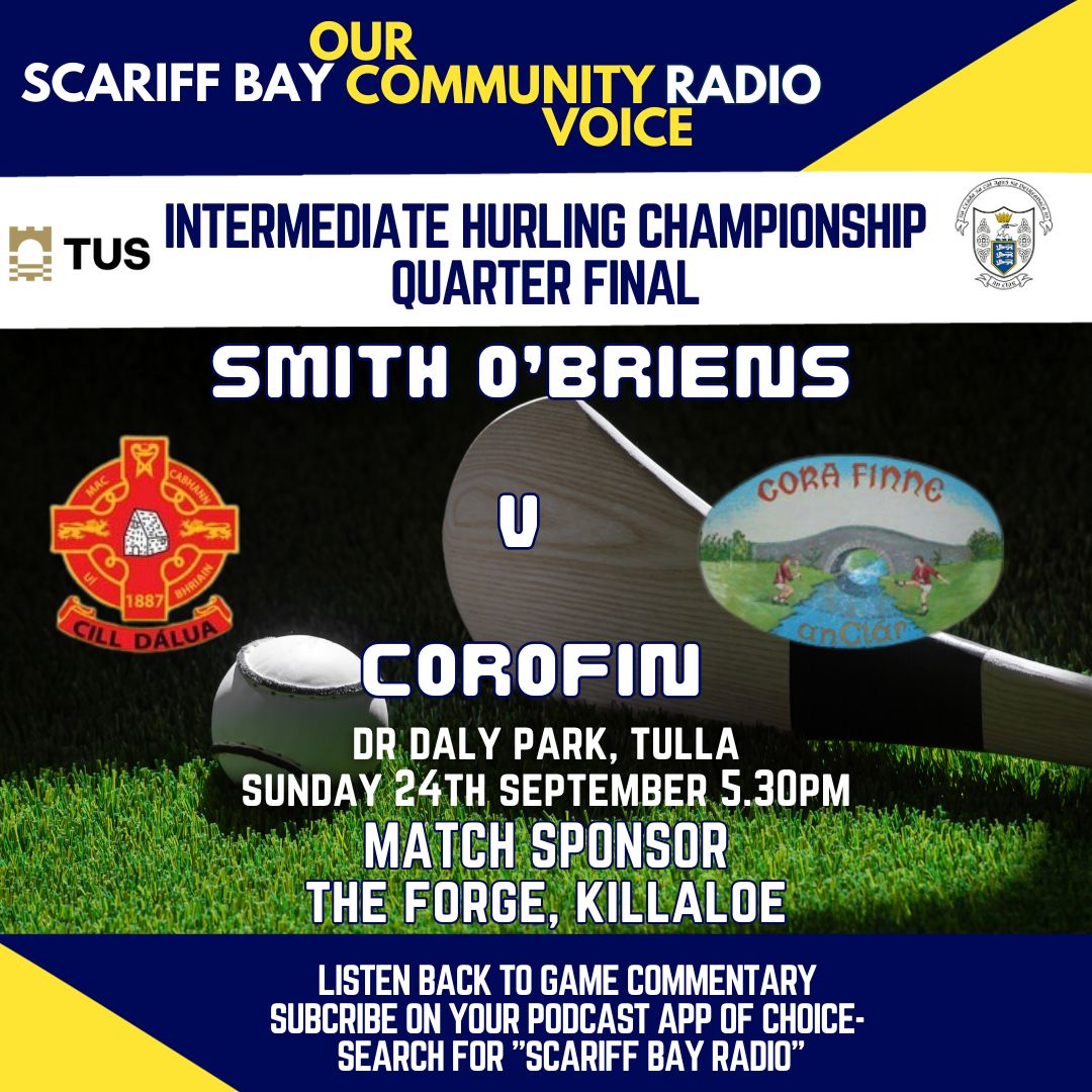 - played at Dr Daly Park, Tulla on Sunday 24th September 2023 at 5.30pm Match commentary Leo Doyle with analysis from Brendan Foley and Sean O’Halloran Tus intermediate Championship Quarter - Final.