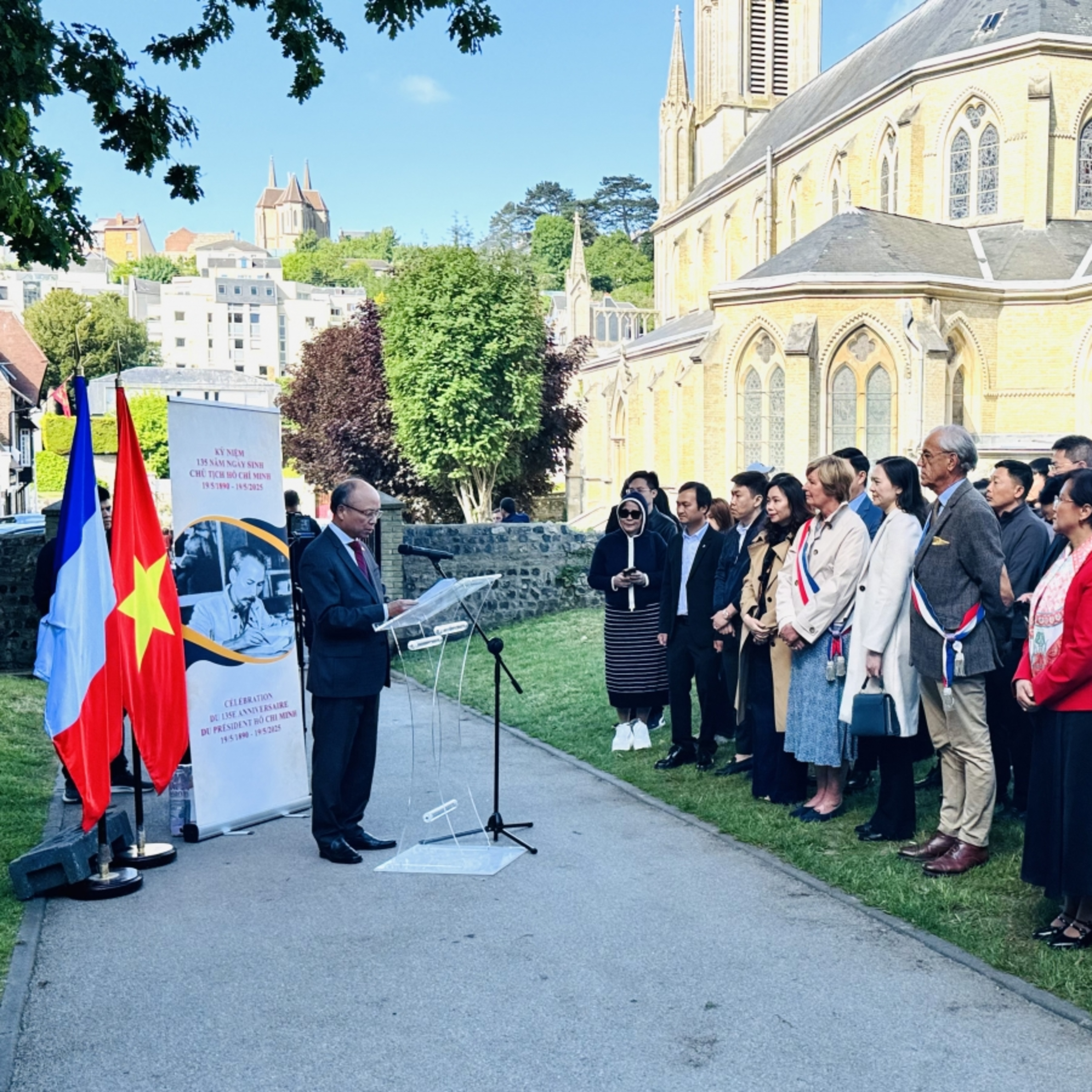 VOV1 - Nằm trong chuỗi các sự kiện kỷ niệm 135 ngày sinh của Chủ tịch Hồ Chí Minh (19/05/1890-19/05/2025), ngày 16/05, Đại sứ quán Việt Nam tại Pháp, phối hợp cùng chính quyền thành phố Sainte-Adresse tổ chức lễ dâng hoa tưởng niệm Người tại biển kỷ niệm mang tên Chủ tịch Hồ Chí Minh nơi đây.