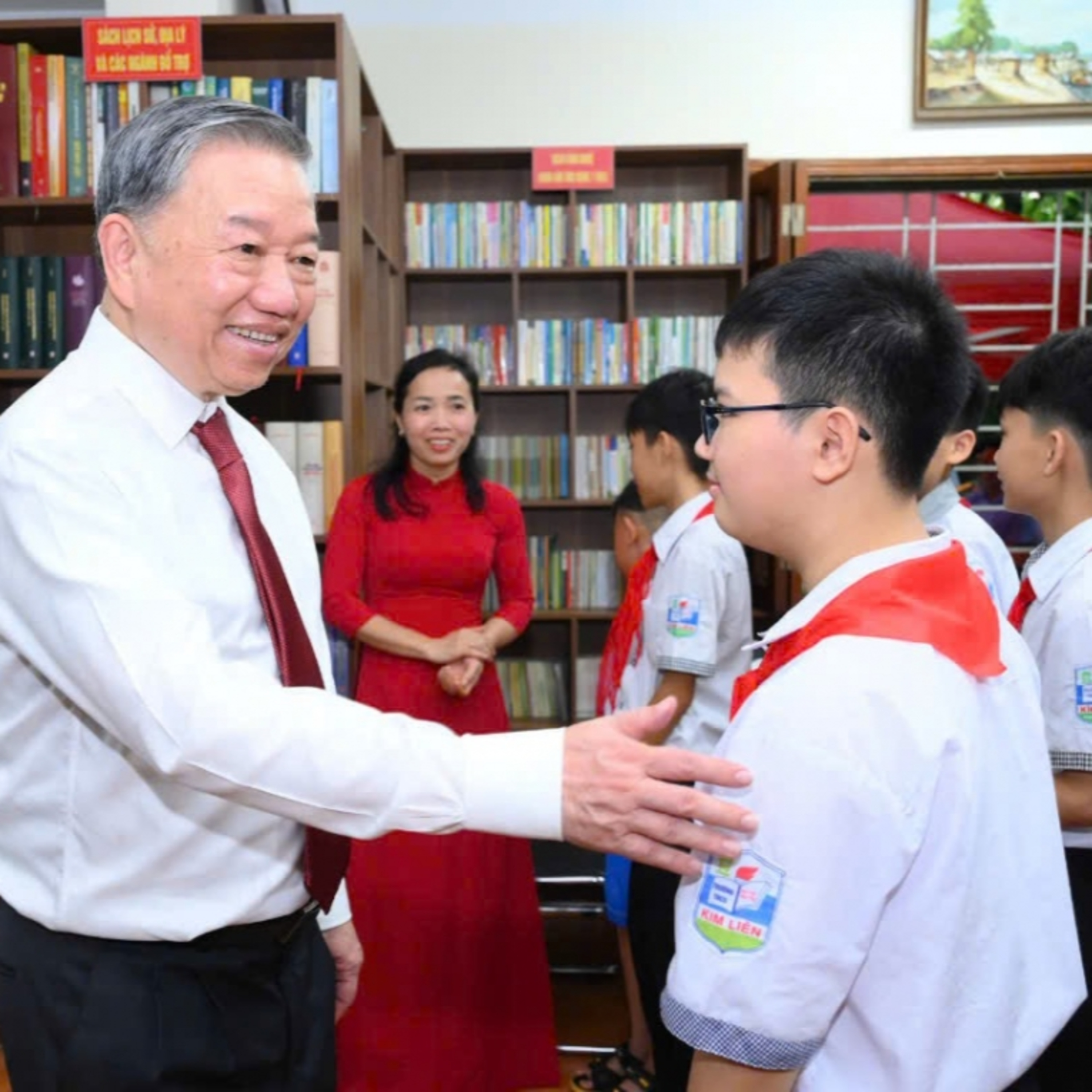 VOV1 - Chiều 15/5, Tổng Bí thư Tô Lâm đã tới dự lễ trao tặng tác phẩm điêu khắc ánh sáng “Trang sử vàng”, thăm tặng quà những người có công, gia đình chính sách, gặp mặt viên chức, người lao động tại Khu Di tích quốc gia đặc biệt Kim Liên và tặng phòng học Stem cho thầy và trò Trường THPT Kim Liên.