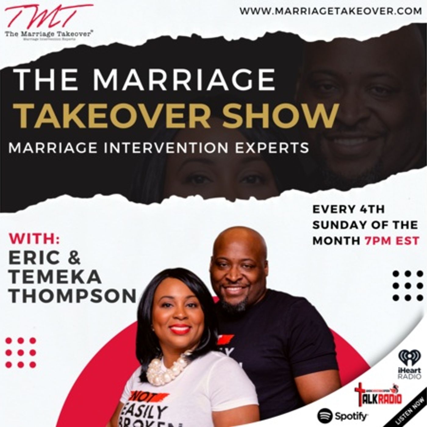 Marriage Takeover with Eric and Temeka What Impact My Marriage Have On My Kids WEEKLY BROADCASTS: “His Abounding Grace” Tuesdays @ 7 pm; ”Challenged To Change” 1st & 2nd Wednesdays @ 7 pm; "Declaring The Finished Work" 1st & 2nd Thursdays @ 12 Noon; "Friday Night Joy" 1st, 2nd & 4th Fridays @ 7 pm; "Bread Of Life" 1st & 3rd Sundays @ 7:00pm; WEEKLY PRAYER: “Mid-Day Glo ry Prayer” Wednesdays @ 1:00pm - Dial-in# (267) 807-9605 Access Code: 732-499# (Listen later @ 267-807-9608 Access Code 732-499*) MONTHLY BROADCASTS: “LifeLine" 1st Mondays @ 7pm; “Adoration” 3rd Mondays @ 7 pm; Spiritual Nuggets of Truth" 2nd & 4th Mondays @ 8 pm; “Matters of The Heart” 3rd Fridays @ 7pm; “Bold And Beautiful” 2nd Saturdays @ 10:00am; "R3 "Real Life, Real Men, Real Talk 2nd Sundays @ 7:00pm; “Marriage Takeover” 4th Sundays @ 7:00 pm ALL TIMES EASTERN STANDARD