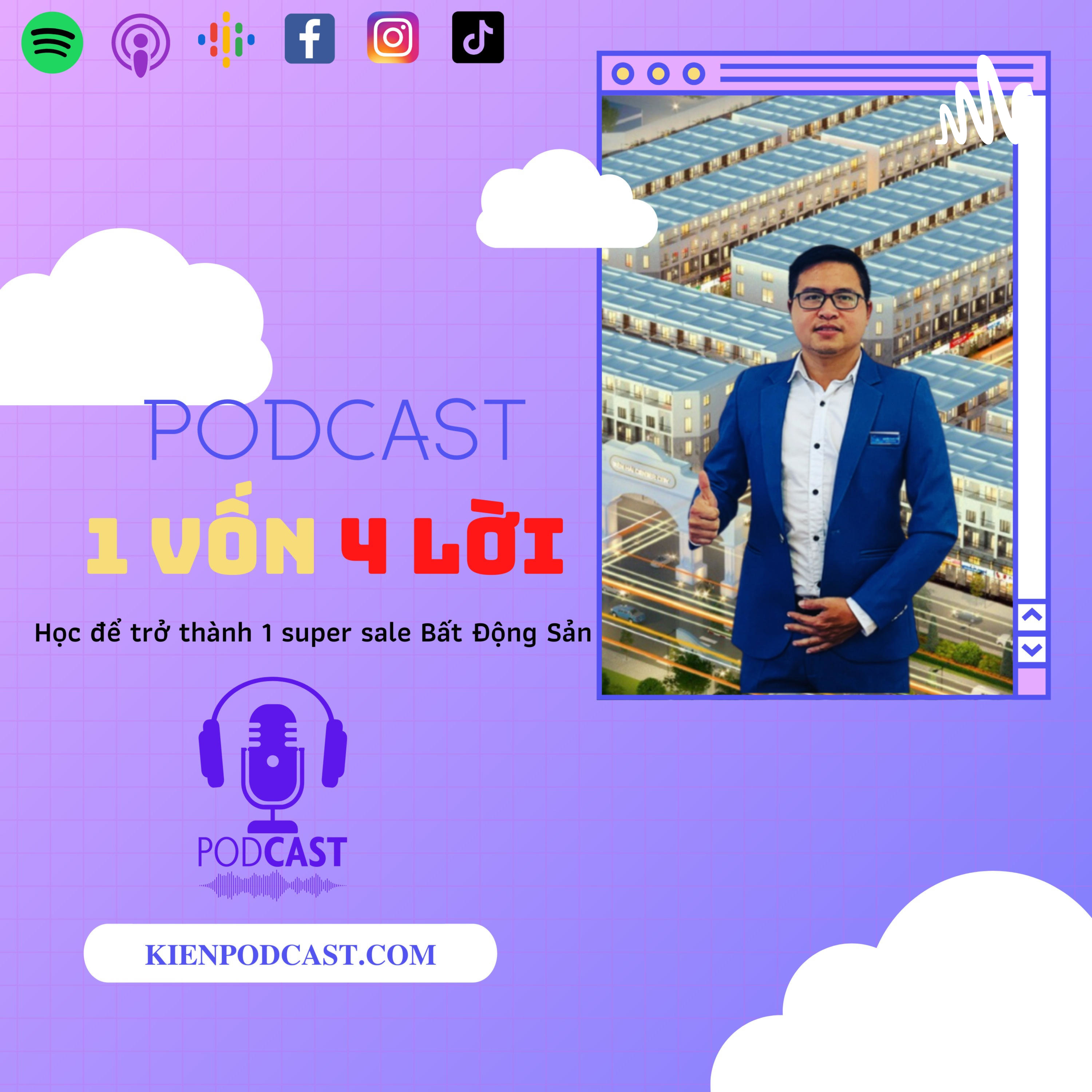 Podcast 1 Vốn 4 Lời là kênh chia sẻ kinh nghiệm và học hỏi về ngành bất động sản. Hiện tại bất động sản đang là một ngàng khá hot tại Việt Nam và được nhiều bạn trẻ yêu thích. Tuy nhiên để trở thành một sale bất động sản chuyên nghiệp thì không phải chuyện đơn giản. Podcast 1 Vốn 4 Lời ra đời sẽ là nơi trao đổi với các diễn giả là các chuyên gia cao cấp trong và ngoài ngành bất động sản cũng như là nơi các chuyên gia chia sẻ kinh nghiệm đã từng trải qua của họ trong suốt quá trình làm việc. Đây sẽ là nơi không chỉ các bạn sale mới chập chững bước vào nghề bất động sản học hỏi kinh nghiệm quý báu mà sẽ còn là nơi mà sẽ giúp các bạn học hỏi để trở thành 1 super sale trong ngành bất động sản. Hãy đón chờ những tập đầu tiên của seri Podcast 1 Vốn 4 Lời.