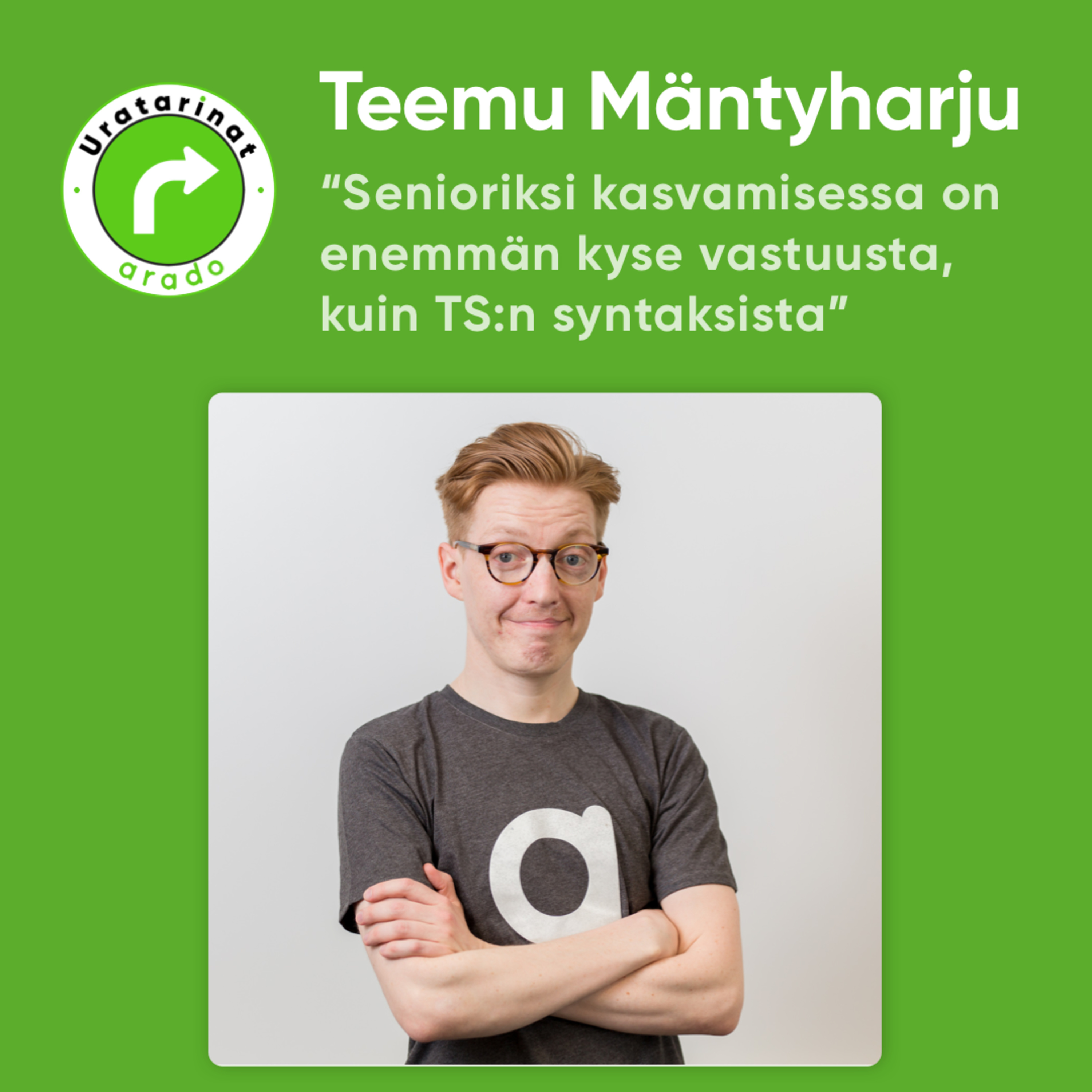 "Senioriksi kasvamisessa on enemmän kyse vastuusta, kuin siitä miten hyvin ymmärrät TS:n syntaksin." - Teemu Mäntyharjun uratarina