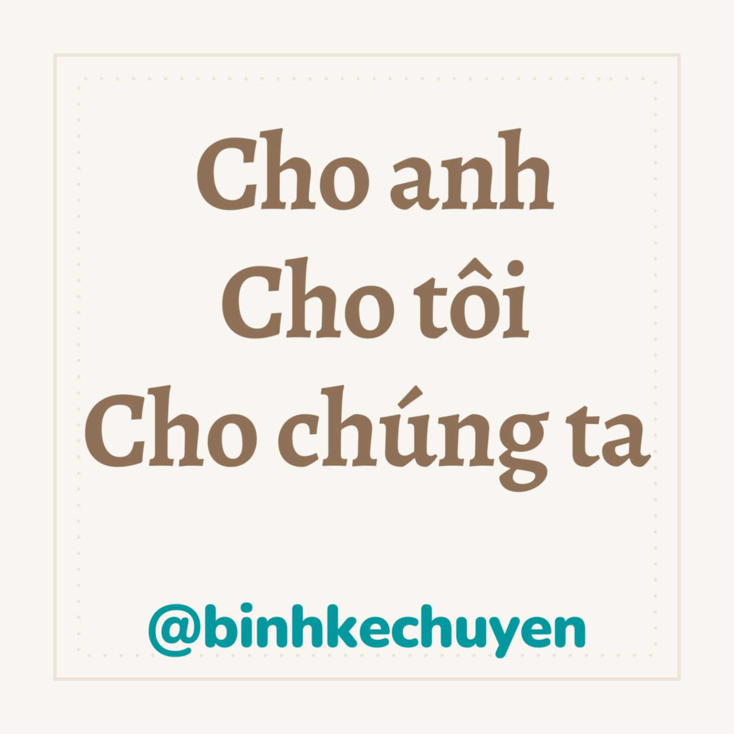Những thứ bạn nghĩ, những thứ bạn đang làm, những điều khiến bạn cảm thấy hài lòng hay hạnh phúc là cho bạn, cho tôi hay cho chúng ta? Cảm ơn mọi người đã lắng nghe, và chúc mừng Saigon trở về với cuộc sống bình thường mới, chúc mừng chúng ta đã vượt qua được đợt dịch lần này. Saigon, 10.10.2021