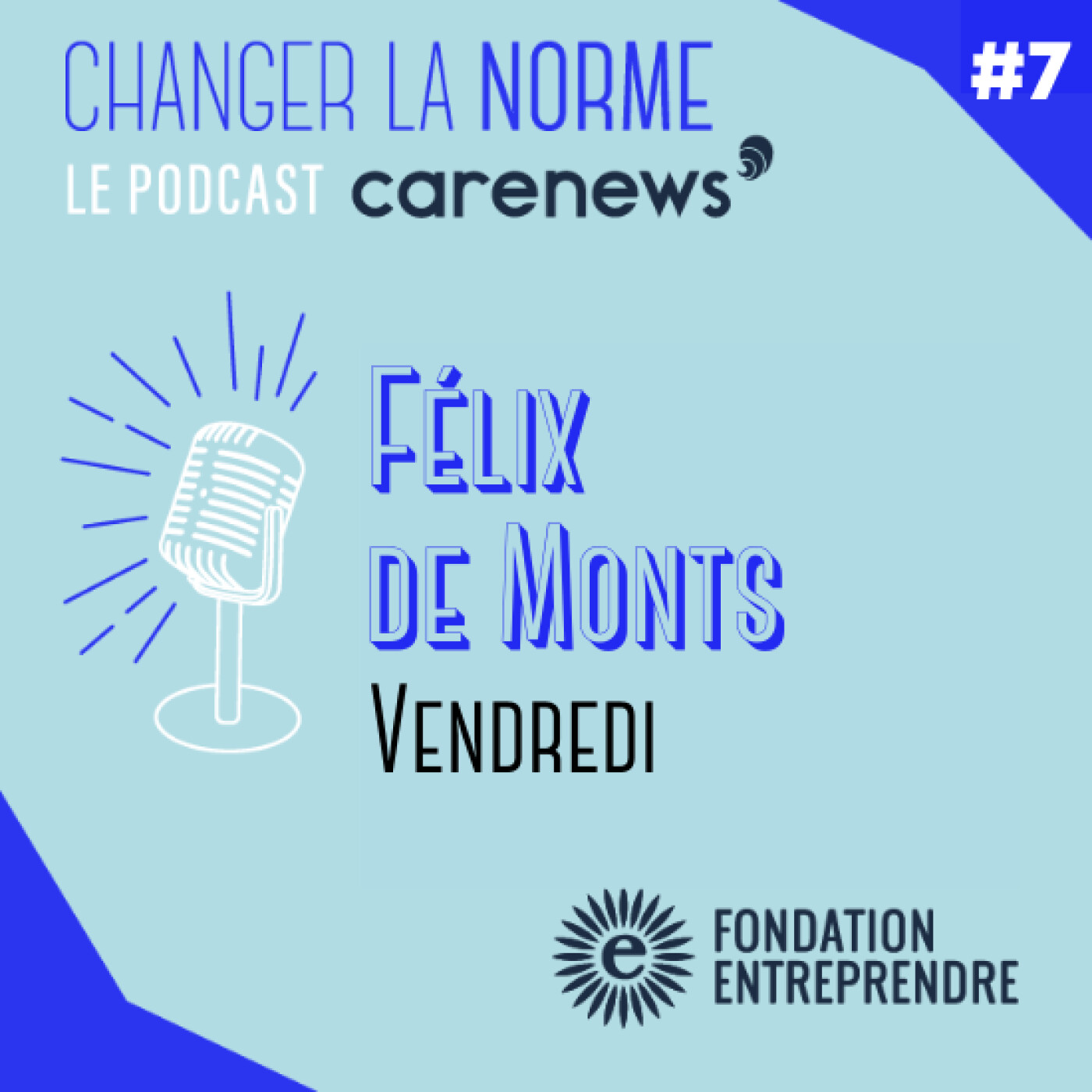 Écoutez le septième épisode de la saison 5 du podcast Changer La Norme, animé par Flavie Deprez. Depuis plus de deux ans, dans le podcast Changer La Norme, Flavie Deprez, fondatrice de Carenews, le média des acteurs de l'engagement, reçoit des entrepreneurs sociaux. Ces entrepreneurs d’un genre différent ne sont ni des bisounours, ni Gandhi, ils ont leurs galères, leurs joies, leurs réussites, leurs doutes. De la technique, de l’humain et du commercial à gérer, ils veulent mouvoir les choses, ont décidé de placer l’impact et ses valeurs avant la valorisation financière. Dans ce nouvel épisode, écoutez Félix de Monts, aujourd’hui fondateur de Vendredi, une plateforme de l'engagement pour les entreprises, associations, salariés et tout citoyen. Le but ? Changer le monde sans changer de métier, en s’engageant sur son temps de travail auprès d'associations. Depuis 2014, Vendredi fait le lien entre ces acteurs qui veulent s’engager, et les associations ou entreprises sociales. Quelles ont été les étapes de la construction de Vendredi ? Quelle est la position de Vendredi sur le marché ? Quel futur pour la plateforme d’engagement dans le secteur ? La saison 5 de Changer La Norme est soutenue par la Fondation Entreprendre.