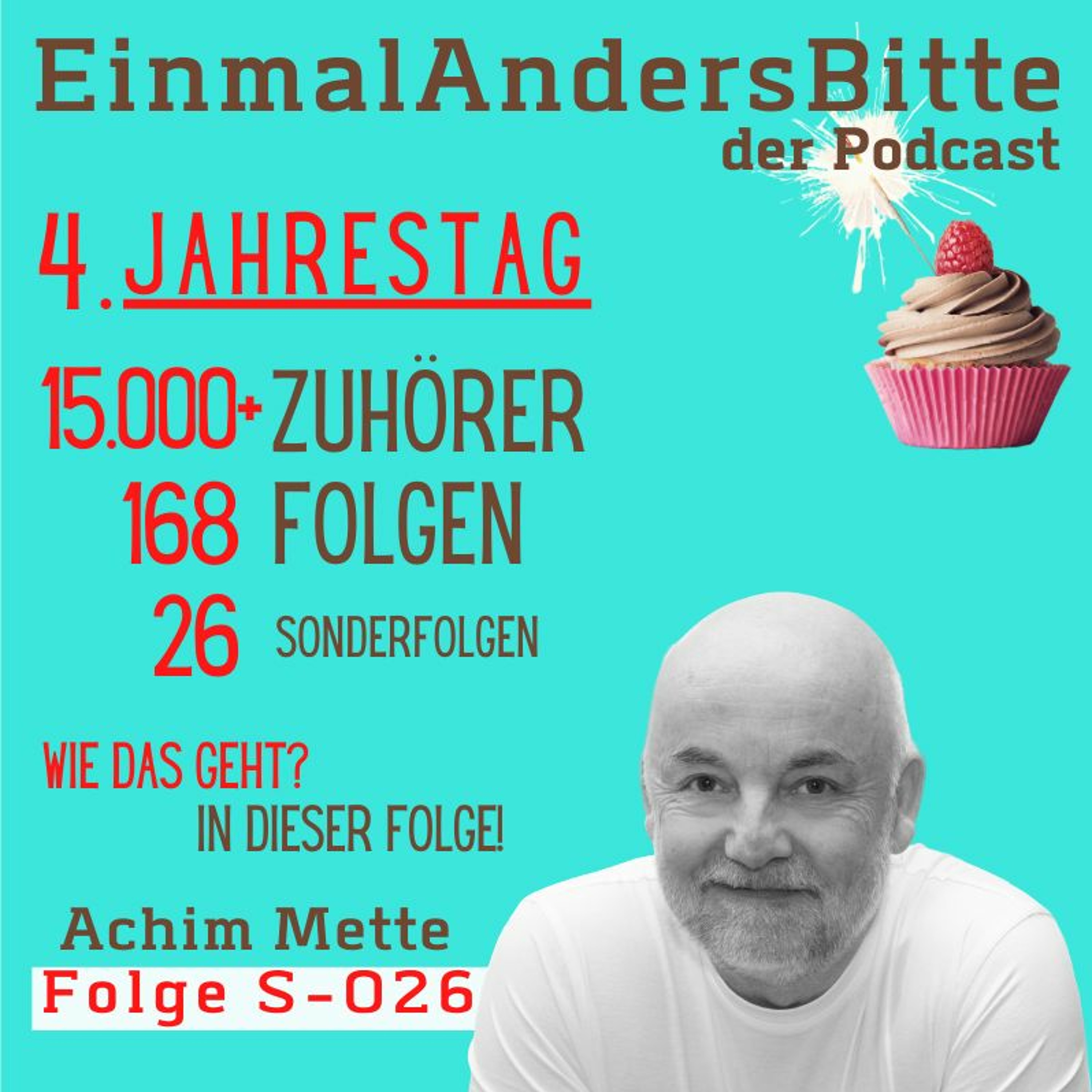 Es gibt was zu feiern! Wieder mal, wieder da, wie jedes Jahr. OK, soo alt ist „EinmalAndersBitte“ noch nicht aber wie letztes Jahr schon gesagt, wer später 10 Jahre Podcast feiern möchte, muss das vierte Jahr gefeiert haben. Danke an über 15.000 Zuhörer; zum Mehrwert später Werkzeuge oder Sichtweisen für Deinen Erfolg.
