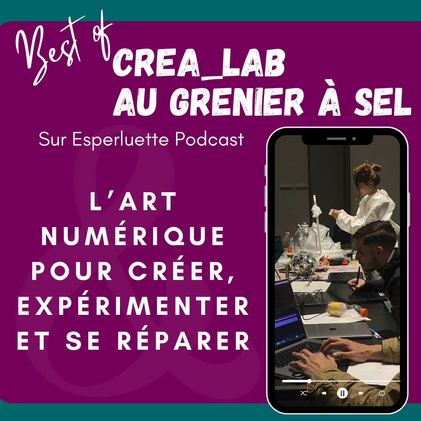 Pour la première fois dans l’histoire d’Esperluette et avant de lancer la saison 06, je vais rediffuser 12 épisodes emblématiques des 5 premières saisons. Des associations qui bougent les choses en passant par des entreprises responsables, des artistes professionnels ou en devenir, ou encore une découverte du patrimoine local, chaque épisode est une rencontre, un partage, une envie de montrer toute la diversité des énergies de mon territoire, le Vaucluse. La saison 06 est en préparation, et j’ai encore beaucoup de personnes passionnées à vous présenter !   En attendant, aujourd’hui je vous emmène dans un lieu culturel unique à Avignon où l’art et le numérique se rencontrent : LE GRENIER À SEL https://legrenierasel-avignon.fr 🎨  Nous allons parler culture bien évidemment, mais surtout de lien social et de découverte grâce à la belle aventure que viennent de vivre 8 jeunes de la mission locale du Grand Avignon. Ils ont participé au 1er CREA_LAB https://legrenierasel-avignon.fr/crea_lab , idée portée par le Grenier à Sel et soutenue par la Fondation Orange https://www.fondationorange.com/fr dans le cadre d'un appel à projet. L’objectif : proposer un cycle de 4  workshops de création qui lie art et numérique à des jeunes en insertion et leur permettre ensuite d’exposer leurs œuvres en les intégrant dans l’exposition de l’artiste Samuel Rousseau “Et pourtant elle tourne ! ”.  Un défi relevé avec brio puisque ce sont huit œuvres puissantes et engagées qui ont été présentées lors de la restitution publique où j’ai enregistré cet épisode. Vous allez y entendre toutes les parties-prenantes de ce projet : Marion du Grenier à Sel, Julia de la Mission Locale, Céline de la Fondation Orange, Cécilia, Ahmet, Fabe, Anaïs, Laurène , Christopher, Nathan et Antoine les jeunes qui ont mis beaucoup d’énergie dans la réalisation de ce projet et Samuel Rousseau, l’artiste qui est venu partager son expériences avec les jeunes. 🎙️ Je vous laisse en compagnie de ce beau groupe d’êtres humains avides de partage et de créativité. Bonne écoute !     Épisode diffusé pour la 1ère fois en juin 2023