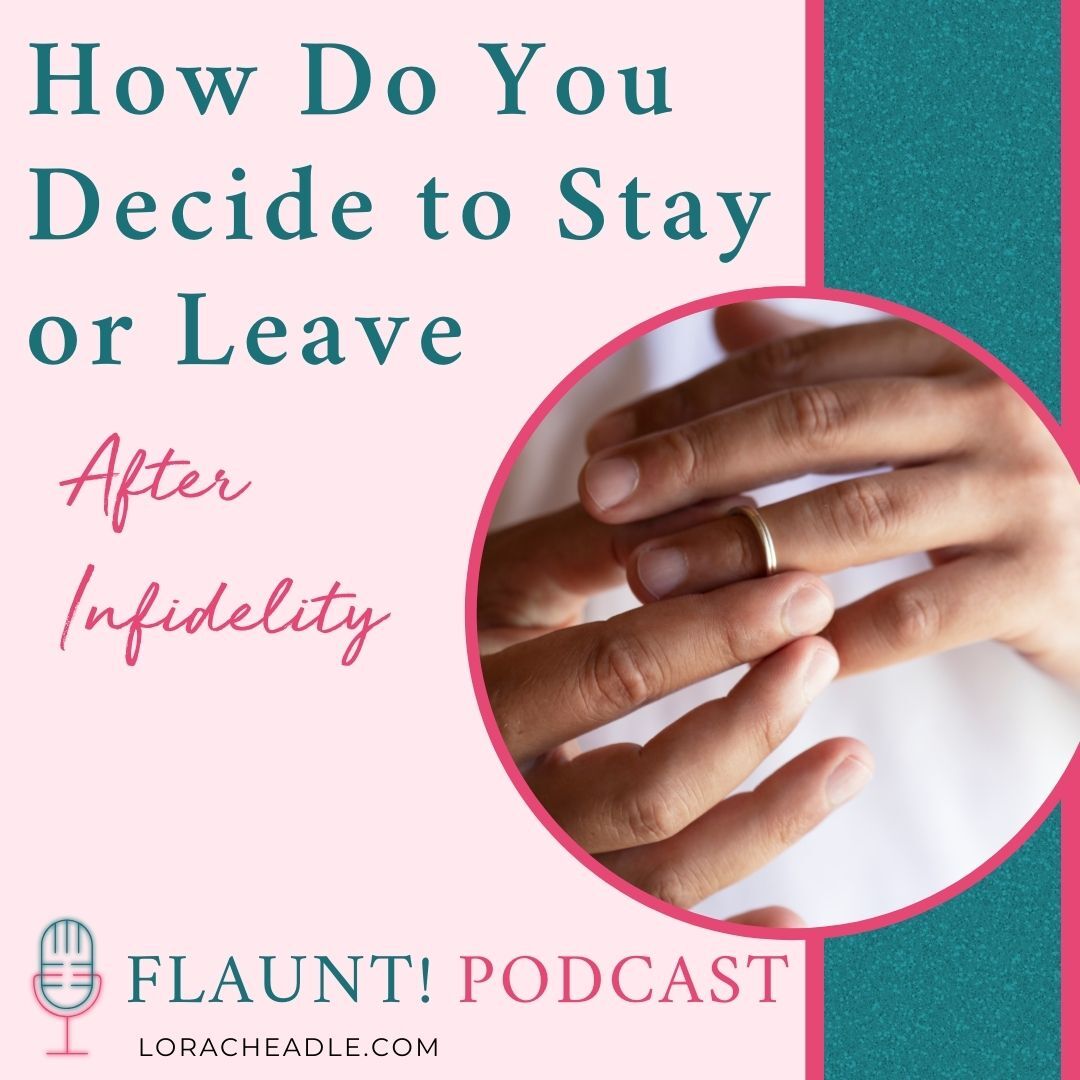 If your partner cheats, the assumption is you’ll leave. Others trying to support you will often say things like “take him for all he’s worth!” or “make him pay!” Perhaps in the past you’ve even claimed that “if he ever cheats, I’m outta here!” The decision seems so clear – until you’ve been cheated on. In reality, there’s more drama, emotion, and pain to contend with than you ever anticipated, and leaving is not always the right option. Or if it is, now may not be the right time. Here’s what you need to know. Five Reasons Why it’s OK to Stay: __ __ Join my Facebook Group, Affair Recovery for Women and get in on the healing action www.facebook.com/groups/affairrecoveryforwomen/ http://www.facebook.com/groups/affairrecoveryforwomen/ Need Help Now? Get the understanding, clarity, & support you deserve today! Schedule your one-hour breakthrough Zoom session with Lora today. Together we will figure out where you are at, what’s blocking you from being where you want to be, and design a clear strategy for how to get you there. *BONUS!* This session includes 30 minutes of follow-up support. Schedule and pay here: https://calendly.com/loras-schedule/coaching-session Sparkle After Betrayal Recovery Guide at www.BetrayalRecoveryGuide.com http://www.betrayalrecoveryguide.com/, a guide designed to help you take the first steps in feeling better, so you can reclaim your power, own your worth, and start putting yourself, and your life, back together again. Learn More & Apply Here! www.AffairRecoveryForWomen.com http://www.affairrecoveryforwomen.com/ About Lora: Attorney, speaker and Burnout & Betrayal Recovery Coach, Lora Cheadle believes that betrayal uncovers the truth of what’s possible when we stop focusing on what was done to us and start showing up unapologetically for ourselves. She helps women rebuild their identity and self-worth after infidelity so they can reclaim (or find for the very first time) their confidence, clarity, and connection to source and create their own kind of happily ever after. https://betterhelp.com/FLAUNTThank you to BetterHelp for sponsoring this podcast! Take charge of your mental health and get 10% off your first month of therapy at https://BetterHelp.com/FLAUNT https://betterhelp.com/FLAUNT Untangle yourself from the past, reclaim your power, and own your worth so you can create a future you love on your own terms. All with a wink and a smile! Learn more at www.loracheadle.com http://www.loracheadle.com/ and follow me across all social! The most comfortable shoes you will ever wear! Available in seven heel heights, these shoes will keep you comfortably on your feet for 12 hours. Made with cork, many styles are available including heels, wedges, and boots. www.EuropeanHeels.com http://www.EuropeanHeels.com $25 off with Discount Code Flaunt https://www.amazon.com/FLAUNT-Cover-Reveal-Smart-Spiritual/dp/1608686213 Purchase Lora’s book, FLAUNT! Drop Your Cover and Reveal Your Smart, Sexy & Spiritual Self https://www.amazon.com/FLAUNT-Cover-Reveal-Smart-Spiritual/dp/1608686213 on Amazon, https://www.amazon.com/FLAUNT-Cover-Reveal-Smart-Spiritual/dp/1608686213IndieBound https://www.indiebound.org/book/9781608686216 or wherever books are sold. Take the Lead in the Dance of Life, Strip out of the Past, and Choreograph Your Future Today!