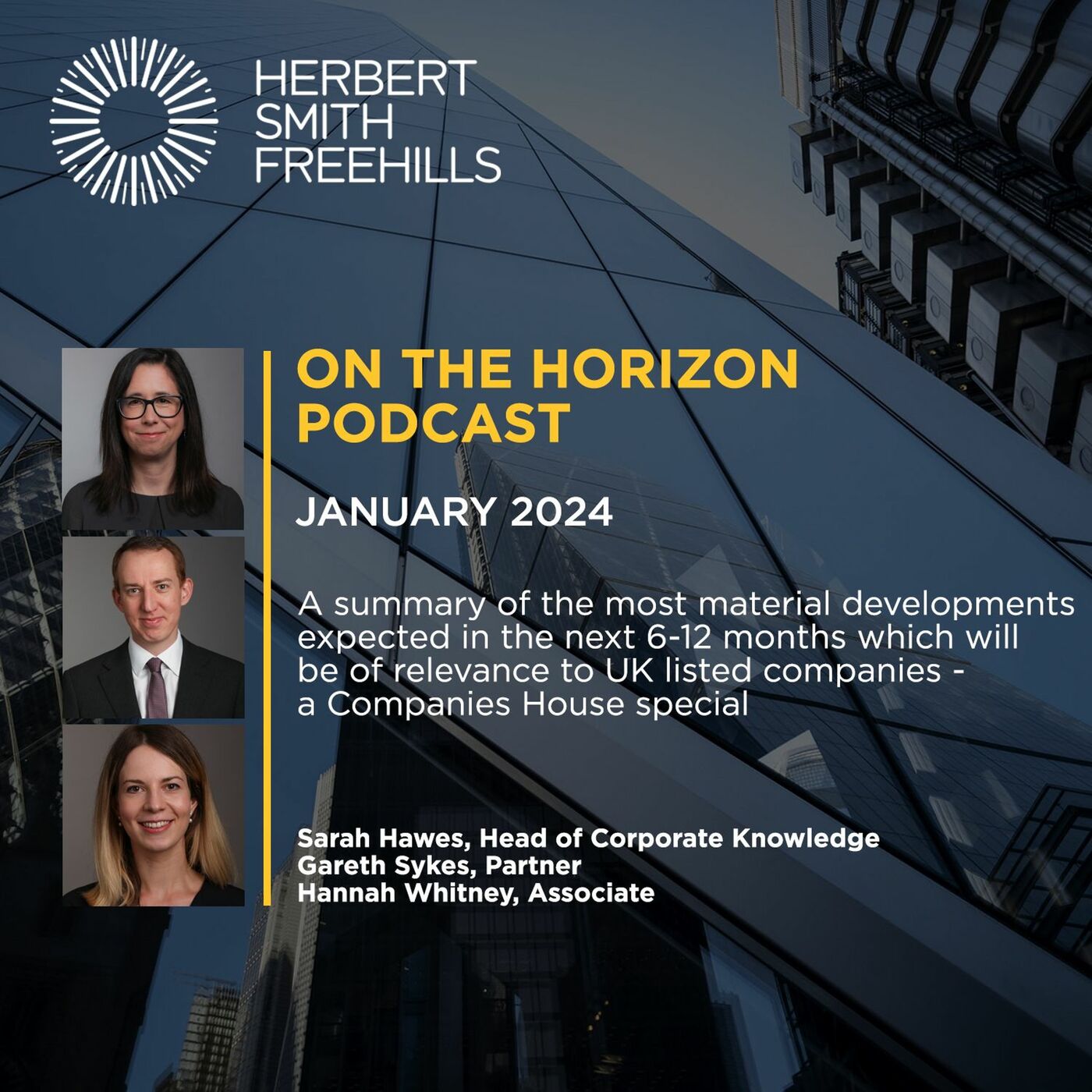 A summary of the most material developments expected in the next 6-12 months which will be of relevance to UK listed companies - a Companies House special. Speakers: Sarah Hawes, Head of Corporate Knowledge, Gareth Sykes, Partner and Hannah Whitney, Associate