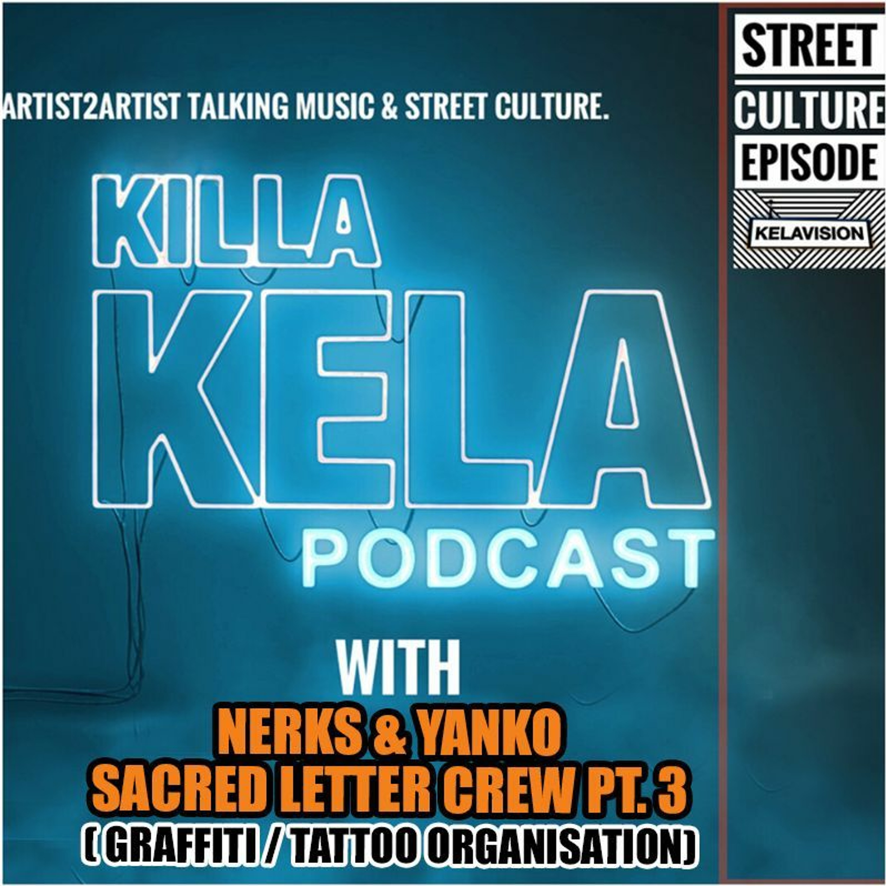 Todays Podcast we are serving up the 3rd Part of the Sacred Letters Trilogy episode with NERKS & YANKO, Chicano style writers to the highest degree. Sacred Letters are the first of their kind to build a nationwide crew across the whole of the UK, and today we are talking to both the Nottingham & the South Coast representatives. We’re getting into the science of tattooing, the relationship with Graff, the crews infrastructure and a whole lot more. This is NERK’S & YANKO’S podcast, ENJOY! Do not try the subject matter on this podcast at home or illegally. Documenting the Graffiti Artists of History past, before their critical acclaims and contributions to the urban arts. Disclaimer: This presentation is for documentation and educational purposes only. No hard drive copies, footage or records of any interviews are held by Killa Kela and once uploaded to the outlets listed below, those are the only records in existence. Any illegal activity discussed is spoken only by our guests within a historical context, and is neither encouraged, supported or incited. Any views or opinions made by the guests who appear on this platform are of their own.