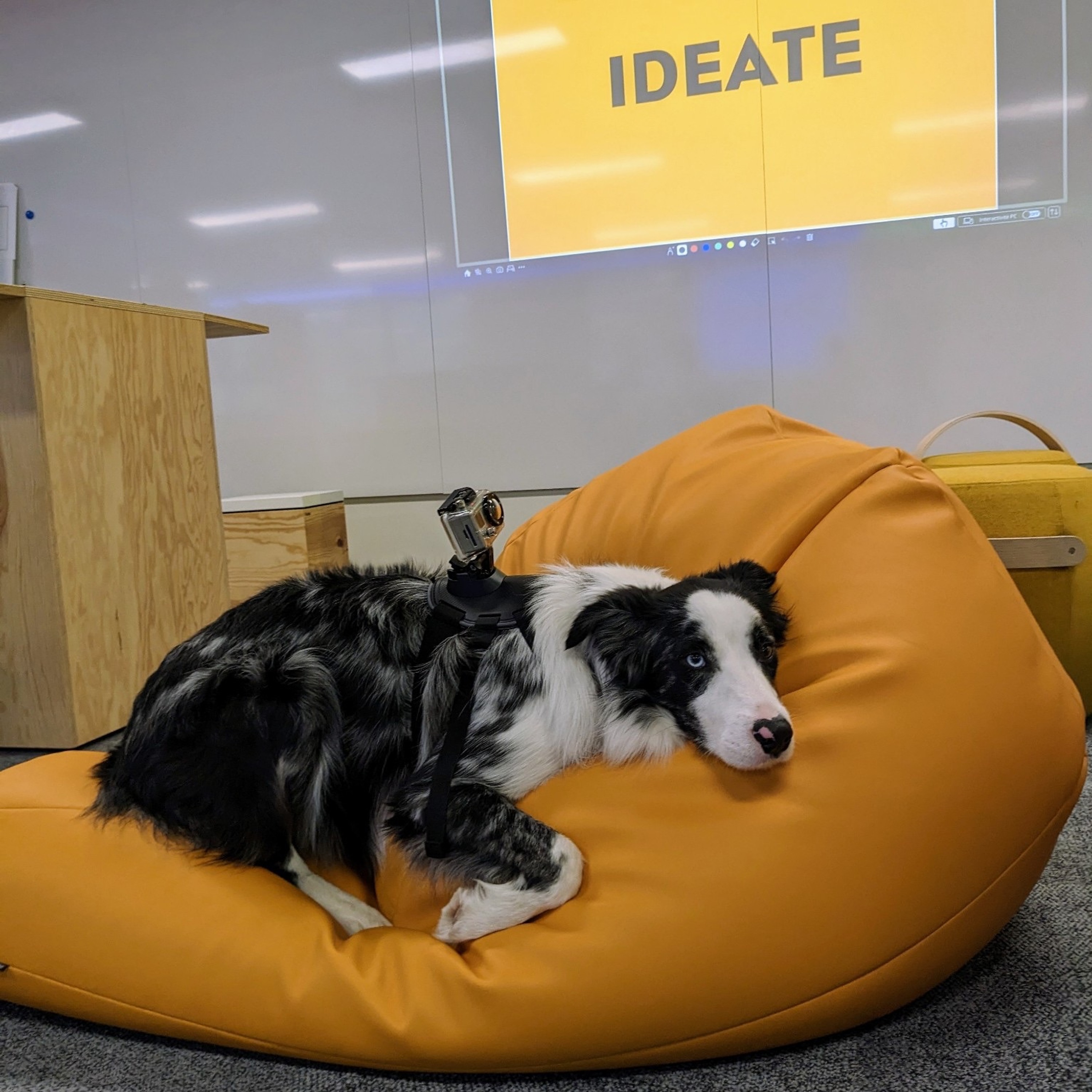 [A France Bleu Isère, le 10 janvier 2023, avec Vanessa Lambert] Fluffy est un border collie de 1 an et demi, il est donc majeur et à ce titre, il a sa propre page Linkedin qui affiche sa compétence professionnelle : médiateur pédagogique. Chaque jour, il accompagne son humaine au travail.