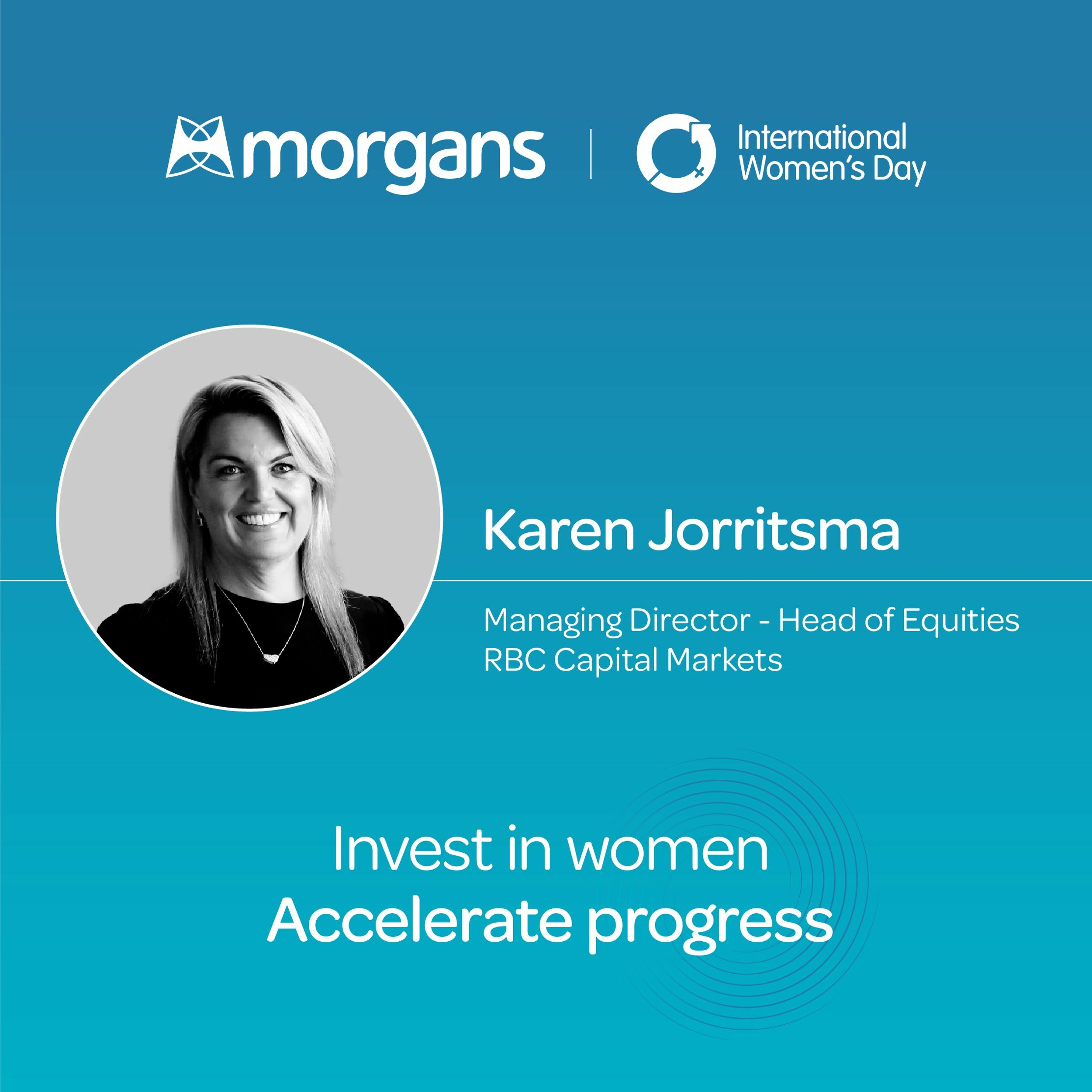 The Morgans Network was joined by Karen Jorritsma, Managing Director and Head of Equities at RBC Capital Markets on International Women's Day 2024. Check out more from Morgans: Visit the Morgans website: www.morgans.com.au Check out our blog: www.morgans.com.au/Blog On Facebook: www.facebook.com/MorgansAU On Instagram: www.instagram.com/Morgans.Australia On Twitter: twitter.com/MorgansAU
