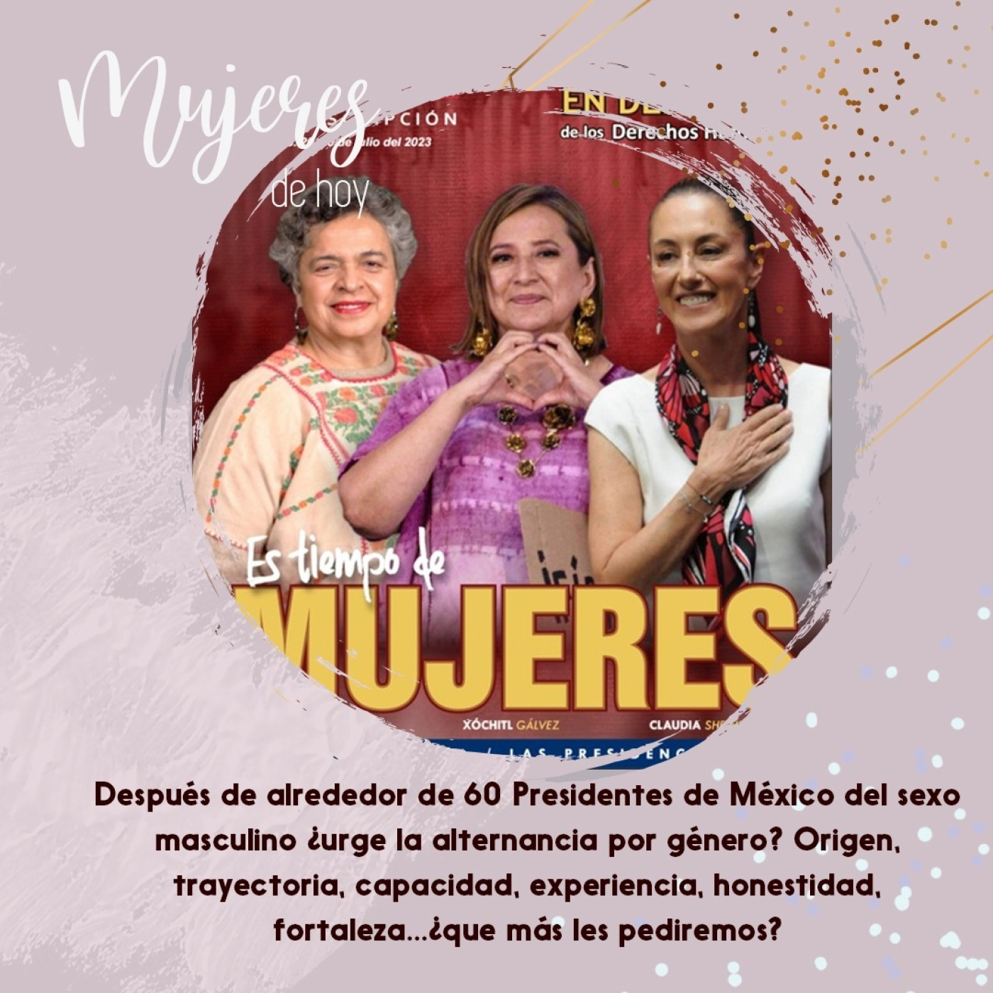 Después de alrededor de 60 Presidentes de México del sexo masculino ¿urge la alternancia por género? Origen, trayectoria, capacidad, experiencia, honestidad, fortaleza...¿que más les pediremos?
