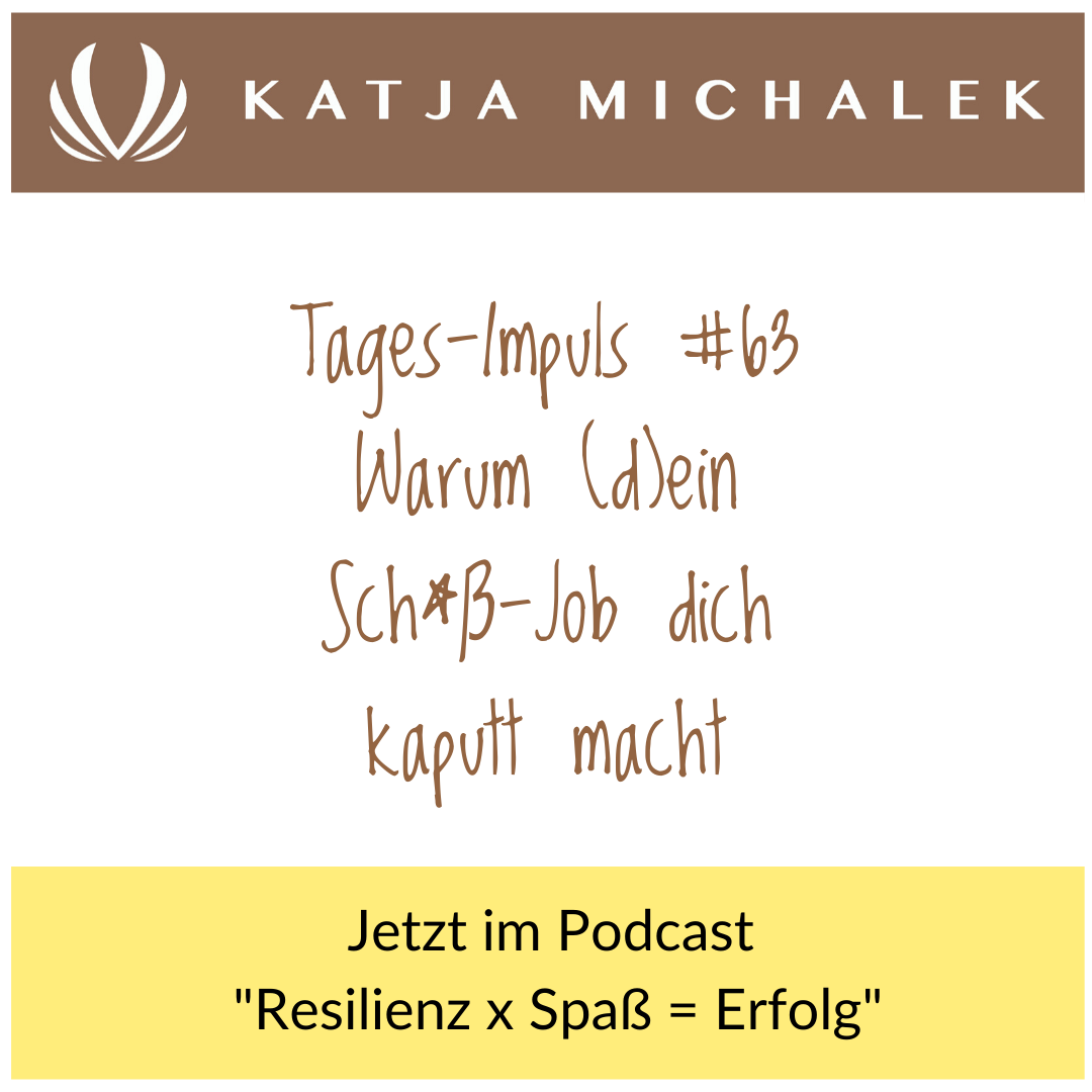 Gemeinsam gut durch die Krise! Seit Beginn der Corona-Krise gehe ich jeden Montag- bis Freitagmorgen um 6:50 Uhr in meiner Facebook-Gruppe „Veränderungen leicht gemacht“ live, um einen positiven Impuls für den Tag zu setzen. Die Aufzeichnungen dieser Videos kannst du nun – zeitversetzt – in meinem Podcast nach hören. Nach insgesamt 67 Videos findet diese Serie nun ein Ende. Aber ich möchte weiter für dich da sein! Welche Form ich dafür gefunden habe, und was du davon hast: davon erzähle ich dir hier! Komm auch gerne in meine kostenlose, geschlossene, exklusive Facebook-Gruppe ➡️ www.facebook.com/groups/veraenderungenleichtgemacht ⬅️ ----------------------------------------------------------- [👩🏻💻] WEBSITE Besuche mich gern auf meiner Webseite um mehr über mich, den Umgang mit Veränderungen und Resilienz zu erfahren. [katjamichalek.com] ➖ [📚] BÜCHER Meine beiden Bücher zum Thema "Resilienz" bekommst du mit persönlicher Widmung auf meiner Website [katjamichalek.de/veroeffentlichungen] ➖ [❤️] KLARHEITSGESPRÄCH Hol dir dein kostenlos Klarheitsgespräch. [katjamichalek.de/kontakt] ➖ [☀️] 3 STUFEN ZUM GLÜCK Wenn du gut vorbereitet, stabil und gelassen durch alle Veränderungen gehen willst, dann komm in mein "3 Stufen zum Glück"-Programm [katjamichalek.de/3-stufen-zum-glueck] ➖ [🚀]ROCKET LIFE SUCCESS CALL Dein wöchentliches Mentoring, dass länger wirkt als es dauert. Tägliche Mehrwert-Videos in einer exklusiven Whatsapp-Gruppe [bit.ly/RL_SuccessCall] ➖ [🚀] ROCKET LIFE DAY Wenn du mehr aus deinem Leben machen willst, komm zu unserem Event und hol dir dein Ticket. [bit.ly/RL_Day] ➖ [#️⃣] HASHTAGS #ResidieSpinne #seiDUdieSpinne #rocketlife #rocketlifeday #persönlichkeitsentwicklung #energie #erfüllung #zufriedenheit #leben #resilienz #veränderung ------------------------------------------------------------------Veränderungen waren schon immer ein selbstverständlicher Teil ihres Lebens: AUFGEWACHSEN IN KENIA, lebte und arbeitete sie in 4 VERSCHIEDENEN LÄNDERN AUF 2 KONTINENTEN. Auch in ihrer 20-JÄHRIGEN KONZERNKARRIERE begrüßte sie jede Veränderung und freute sich stets auf neue Herausforderungen. Dadurch fiel ihr auch die Entscheidung leicht, MIT ANFANG 40 ihre sichere Stelle als Führungskraft bei der Lufthansa aufzugeben und sich ALS SPEAKERIN UND VERÄNDERUNGS-EXPERTIN SELBSTSTÄNDIG zu machen – da waren ihre Kinder 2 und 4 Jahre alt. Kurz darauf setzte 2016 eine schwere Erkrankung ihres Mannes jedoch eine KETTE VON UMBRÜCHEN UND VERÄNDERUNGEN in Gang, mit denen sie zunächst überhaupt NICHT ZURECHTKAM. In der Folge erkrankte sie selbst, bis hin zu einer Depression. Unter dieser Situation litten vor allem diejenigen, die am wenigstens daran ändern konnten: ihre beiden Söhne. Daraufhin begann sie sich intensiv damit auseinanderzusetzen, warum sie selbst, wie auch die meisten Menschen, mit freiwilligen Veränderungen gut zurechtkam, mit unfreiwilligen viel schlechter, und fand den SCHLÜSSEL IN DER RESILIENZ, DER MENTALEN WIDERSTANDSKRAFT. Sie beschloss ihre ganze Energie darauf zu legen Menschen in Umbruchsituationen zu unterstützen und ließ sich dazu von den besten Trainern und Coaches im deutschsprachigen Raum ausbilden. Seitdem hat SIE HUNDERTE MENSCHEN 1:1 in Veränderungsprozessen begleitet und TAUSENDE WEITERE IN IHREN SEMINAREN UND VORTRÄGEN inspiriert und für Veränderungen stark gemacht. Über ZWEI DUTZEND FIRMEN, darunter TUI oder alltours, vertrauen ihr die Weiterentwicklung ihrer Mitarbeiter an. Aktuell arbeitet sie bereits an ihrem 3. BUCH ZUM THEMA VERÄNDERUNG UND RESILIENZ. Sie sagt über sich selbst, dass sie heute so glücklich und erfüllt lebt, wie nie zuvor, und zeigt als KEYNOTE-SPEAKERIN und EXPERTIN FÜR UMBRUCHSSITUATIONEN Menschen, wie sie Veränderungen nutzen können, um ihre beste Version von Erfolg zu leben. Die Formel "Resilienz x Spaß = Erfolg" bedeutet für mich ganz konkret: Wenn du resilient mit Veränderungen umgehst, und diese als Chance siehst, und Spaß und Freude an dem hast, was du tust, wird deinem persönlichen Erfolg nichts mehr im Wege stehen - was auch immer DU darunter verstehst. facebook.com/KatjaMichalekExpertinfuerVeraenderungen Instagram.com/frau_michalek www.katjamichalek.com hallo@katjamichalek.com PODCAST: RESILIENZ X SPASS = ERFOLG (auf Spotify, iTunes, Soundcloud) Was waren deine größten Learnings aus dieser Folge? Welche Erfahrungen möchtest du mit anderen teilen? WENN DU MEHR ÜBER RESILIENZ ERFAHREN, UND WISSEN MÖCHTEST, WIE ES UM DEINE EIGENE RESILIENZ BESTELLT IST (UND WAS DU TUN KANNST), BESTELL DIR GERNE EINES MEINER BÜCHER: oder Erhältlich im Buchhandel, bei Amazon, oder mit persönlicher Widmung auf meiner Website: www.katjamichalek.de/veroeffentlichungen DU WILLST NOCH INTENSIVER UND NACHHALTIGER ARBEITEN? Dann bewirb dich jetzt um einen Termin für ein kostenloses Energiegespräch! www.katjamichalek.de/Kontakt Es grüßt dich herzlich, Deine Katja facebook.com/KatjaMichalekExpertinfuerVeraenderungen Instagram.com/frau_michalek www.katjamichalek.com hallo@katjamichalek.com --- Teile gerne diesen Podcast mit deinen Liebsten, Freunden, auf dass das Thema Resilienz noch mehr in den Fokus der Öffentlichkeit gelangt. Bewerte diese Folge und den Podcast gerne mit 5 Sternen bei Itunes, Spotify oder Stitcher, auf dass wir eine richtige Welle der Erfüllung, Gelassenheit, Bewusstheit und Eigenverantwortung schaffen :-) LISTEN ON: katjamichalek.com: http://bit.ly/PodcastResilienzHomepage Itunes: http://bit.ly/PodcastResilienziTunes Spotify: http://bit.ly/PodcastResilienzSpotify Youtube: http://bit.ly/PodcastResilienzYouTube Kommentiere diese Folge, deinen Mehrwert und deine Erfahrungen bei Instagram: https://www. Instagram.com/frau_michalek Oder teile mit anderen bei Facebook deine Gedanken dazu: https://www. facebook.com/KatjaMichalekExpertinfuerVeraenderungen Danke dir! Deine Katja ABMAHNUNGEN Keine Abmahnung ohne vorherigen Kontakt. 