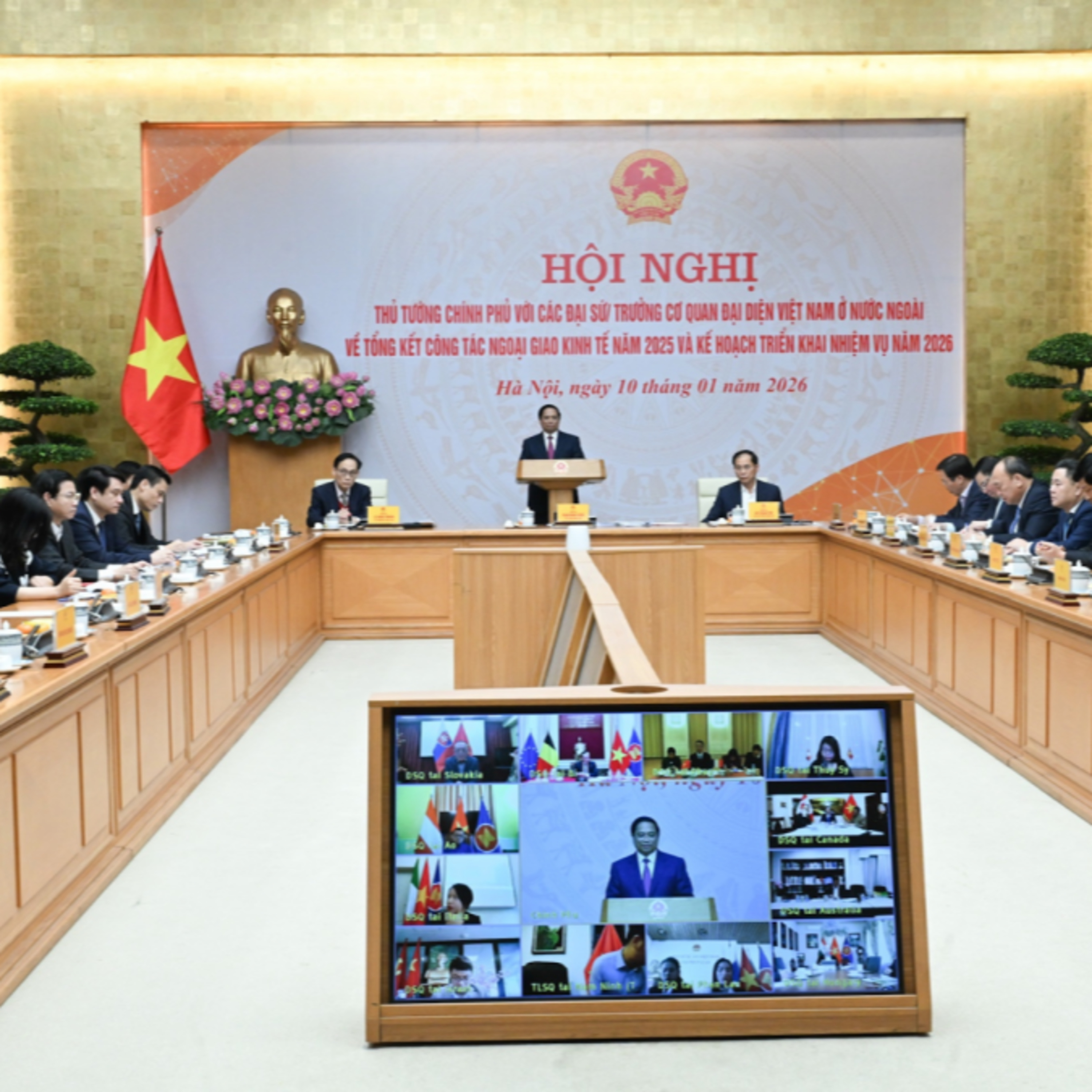 - Chủ trì Hội nghị triển khai phương hướng, nhiệm vụ năm 2026 của Ban Chấp hành Đảng bộ Chính phủ, Thủ tướng Phạm Minh Chính yêu cầu xây dựng và thực hiện hiệu quả 5 chiến lược. - Bộ dân tộc và Tôn giáo tổ chức lễ khởi công 3 dự án đầu tư cơ sở vật chất cho các Trường chuyên biệt tại Thái Nguyên, Thanh Hóa và TPHCM. - Quốc tế đánh giá cao vai trò ngày càng nổi bật của Việt Nam trong chuỗi cung ứng toàn cầu. - Đài TNVN bắt đầu phát sóng loạt bài chính luận: “Trước thềm Đại hội đại biểu toàn quốc lần thứ XIV của Đảng – Lý luận, thực tiễn và kỳ vọng đột phá”, với bài mở đầu nhan đề: “ Xây dựng, chỉnh đốn Đảng trong bối cảnh mới”. - Mỹ tuyên bố dỡ bỏ thêm các lệnh trừng phạt đối với Venezuela ngay trong tuần tới, để tạo điều kiện cho việc bán dầu và chuyển nguồn thu về nước. - Nghị viện châu Âu xem xét khả năng đóng băng Thỏa thuận thương mại quan trọng với Mỹ, do căng thẳng địa chính trị, liên quan tới Grin-len, vùng lãnh thổ tự trị của Đan Mạch.