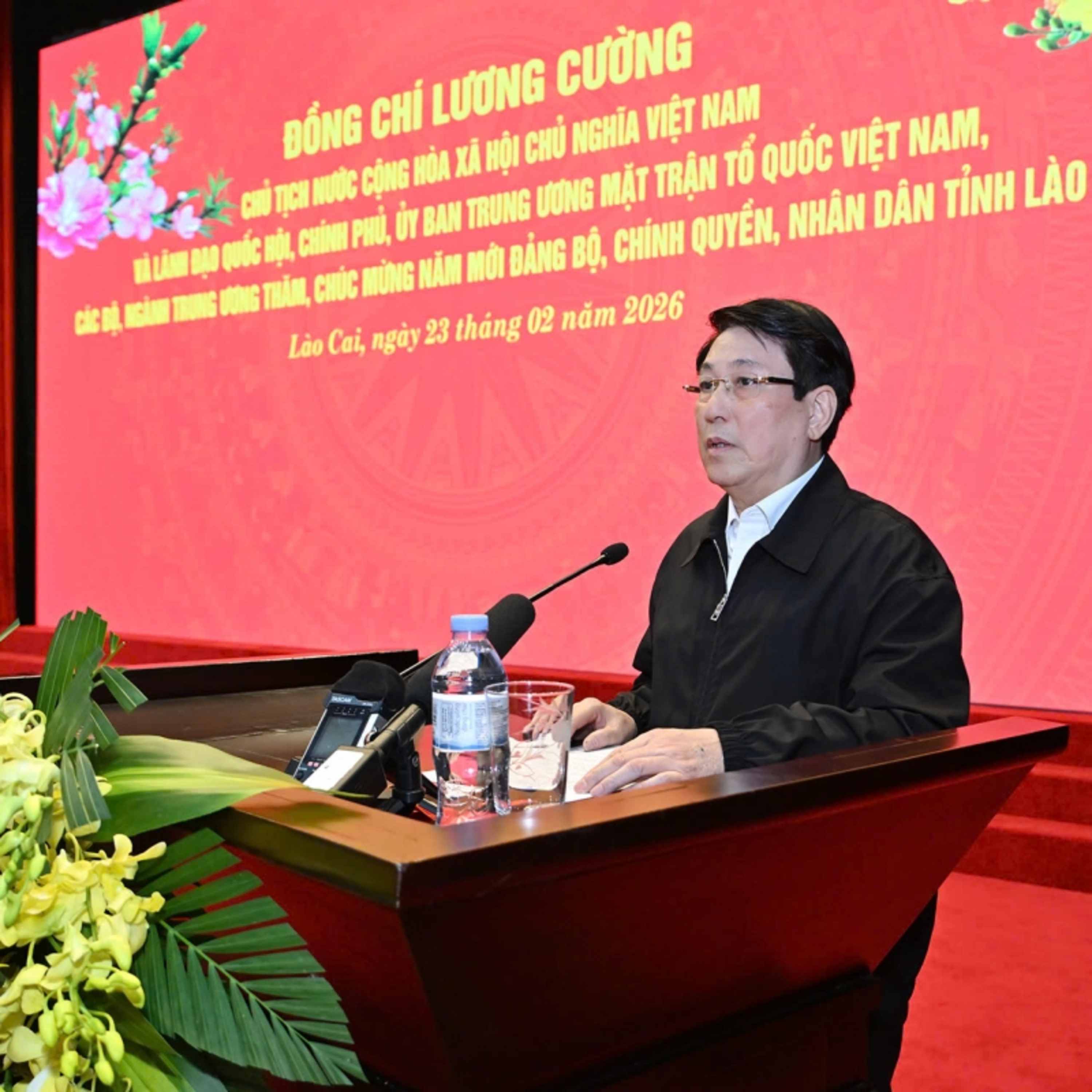 VOV1 - Nhân dịp đầu xuân năm mới và dự lễ phát động “Tết trồng cây đời đời nhớ ơn Bác Hồ", sáng 23/2 (tức mùng 7 Tết Bính Ngọ), Chủ tịch nước Lương Cường và đoàn công tác Trung ương đã tới chúc Tết Đảng bộ, chính quyền, nhân dân tỉnh Lào Cai.